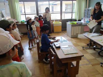 子どもたちは、「ライトがチャイム時に一緒に光るのがすごい。」「手話で話せて楽しい。」など、楽しく交流できました。