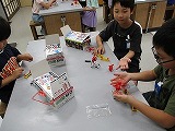 「モーターをもっと速く回すには、どうすればよいのだろうか」という学習問題のもと、実際に回路をつなげたり、回路図を書いたりして考えました。