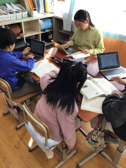 5年生の国語では「固有種がおしえてくれること」の説明文から、筆者が文章中に扱う資料をどのように効果的につかっているかを読み取る学習を進めました。この学習を通して、次の単元では環境に関わる統計資料をつかって文章を書いていきます。