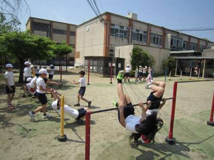 4年生 体育で「鉄ぼう運動」を頑張っています