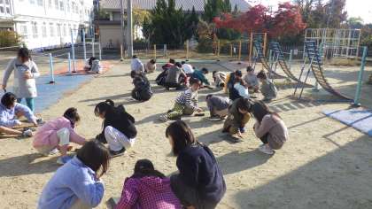 理科の「光のせいしつ」の学習で、虫めがねを使い日光を集める実験をしました。日光が集められるように虫めがねの角度や距離を動かして工夫をしていました。