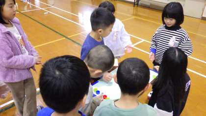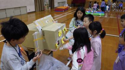 1年生は、2年生の説明をよく聞いて、おもちゃを楽しんでいました。