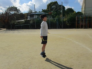 なわとびでは、回数を多く跳ぶことやリズムよく跳ぶことを頑張っています。思い切り跳ぶより、軽く跳ぶくらいでいいことや、縄を回すときに手首を使うと上手に回せることに気付き、練習しています。