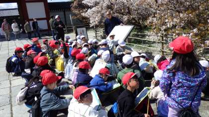 御室桜の特徴や仁和寺の歴史など、初めて知ることがたくさんあり、子供たちは興味深く聞いていました。