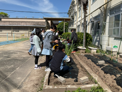 6年生 総合的な学習の時間 野菜の苗植え