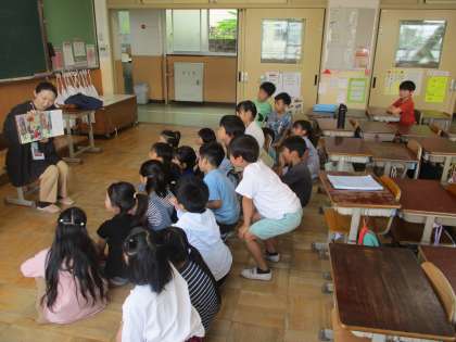 おはなしの会の方々に、絵本の読み聞かせをしていただきました。1組は「あまがえるさん、なぜなくの?」を聞きました。子どもたちは、あまがえるさんの気持ちを考えながら聞いていました。2組では「とけいのおうさま」を聞きました。時間が分からなくなった不思議な世界や色鮮やかな絵を楽しんで聞いていました。読み聞かせが大好きな2年生。これからも一緒に楽しんで読書に取り組みたいと思います。