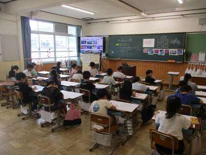 図画工作科であじさいの絵を描きました。まずはあじさいの写真をみんなで見ました。小さな花びら同士が数枚くっついていることや、花びらの色がグラデーションになっていることに気が付きました。そのあとに、構図を考えてから、クレパスで1つひとつの花びらを描きました。あとは来週、絵の具で色を塗ります。クレパスと絵の具を組み合わせて絵を完成させるのは初めてです。色鮮やかなあじさいが完成することが楽しみです。