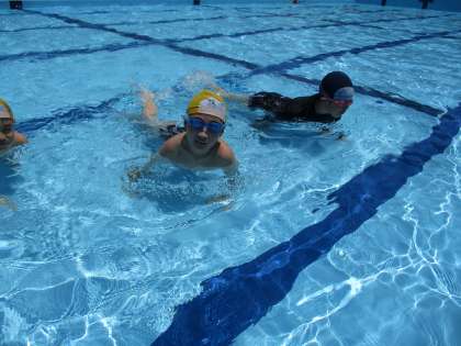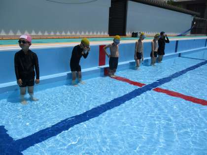 水泳学習が始まりました。入水前の準備からプールに入るための「やくそく」を一つひとつ確認しました。今回は水慣れで低水位でしたが、みんなルールを守りながら安全に楽しむことができました。