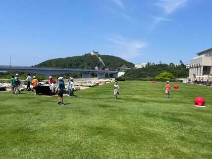 昼食を終え、広々とした芝生の上で、くつろぎました。その広さはなんと、テニスコート約15面分もあるそうです。