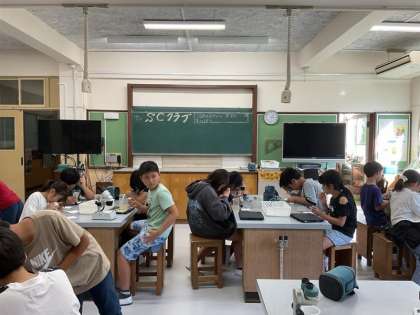 二上山の河原の砂から、ガーネットの細かいつぶを見つけました。ていねいに水洗いした砂から、双眼実態顕微鏡を使ってガーネットをさがしました。みんな真剣に顕微鏡をのぞいて、小さな宝石を見つけて大喜びでした。