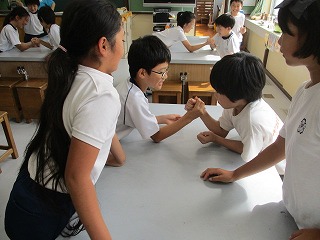 腕相撲をして、筋肉や骨の動きを調べましました。