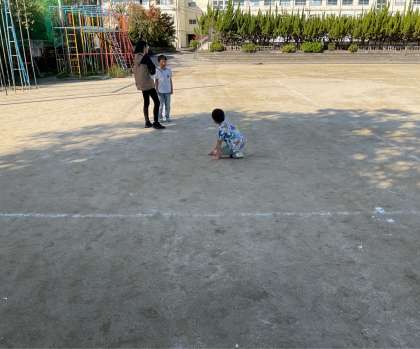 日常生活での経験と結び付けながら予想を立て、実際に運動場で確かめてみました。