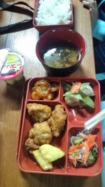 浦山ラリーではいろんなところをかけ巡り。入浴も終わってさっぱりしたところで、夕食です。今日はからあげ。