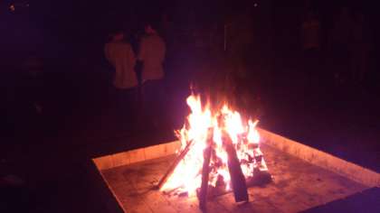 雨の影響もあり、プレーホールでのキャンプファイヤーでした。それでも、みんなは大盛り上がり!。マイムマイムに、学級の出し物、みんな笑顔でした。