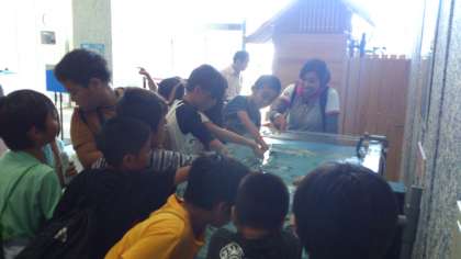 お昼ご飯を食べた後はマリンランド内の見学です。いろいろな魚が見られます。どんな魚を見つけられたかな?