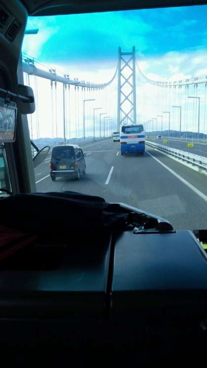 先ほど、神戸タワー近くを通りました。今、明石海峡を通過しました。
