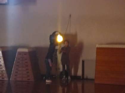 練習するほどに上達していく舞台の上での演技だけでなく,左右のライトや舞台の照明の操作など,子ども達の担当も決めつつ練習を重ねていっているところです。