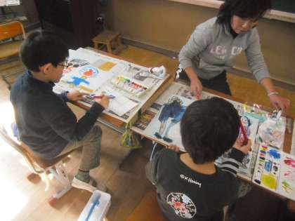 11月18日(月)3時間目,さくらんぼ学級では,学習発表会の思い出を絵で表しました。「楽しかった学習発表会」という題名で,絵を描く学習をしました。学習発表会を思い出しながら,絵の具を使って描きました。