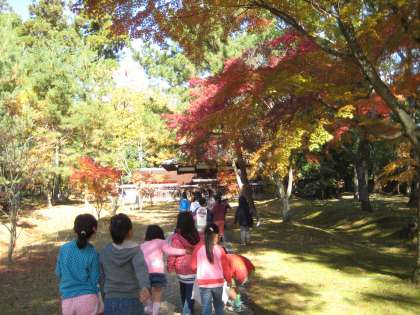 1年生とさくらんぼ学級で,仁和寺へ秋見つけに行ってきました。
