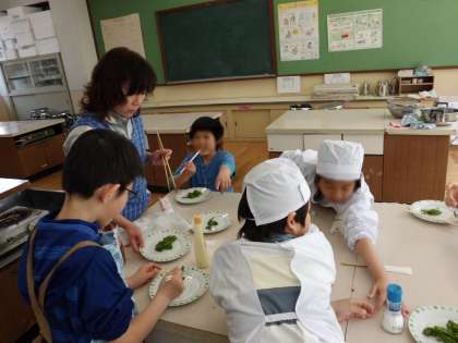 さくらんぼ学級では、みんなでブロッコリーを収穫し、茹でて食べました。