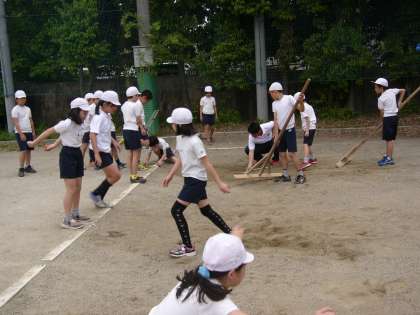 運動場では,「立ち幅とび」と「ソフトボール投げ」に挑戦しました。子どもたちは,テストのやり方の説明をよく聞き,記録を伸ばそうと頑張っていました。