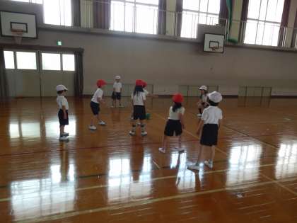 体育の学習でころがしドッジボールをしています。ころがしドッジボールのルールを確認した後、チームに分かれてやりました。初めは、うまくよけれなかった子もだんだんうまくよけられるようになってきました。終わった後に感想を聞くと「勝ててうれしかったよ。」「負けて悔しかった。次は勝ちたい」「みんなで楽しくできたよ。」などの声が聞かれました。