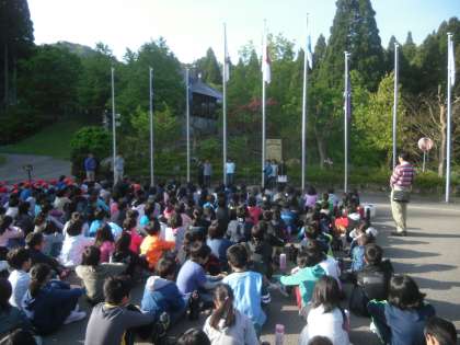そのあと、御室小学校だけでも、「朝の集い」をしました。
