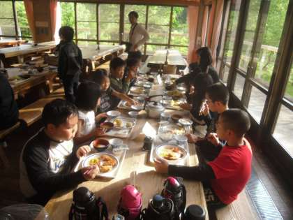 登山で、おなかをすかしていたので、いっぱい食べていました。
