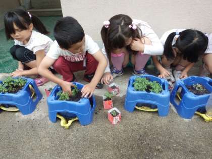 間引いたものはおうちに持って帰っています。子どもたちは,「家でも育てる!」と嬉しそうに言っていました。