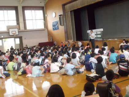 昨年度に比べ,教室から移動してくる時間や,町別の列に並ぶ時間などがすごく短くなりました!子どもたちは先生の話をしっかり聞き,すばやく動くことができていました。