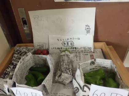 職員室前にはたくさんのとれたて野菜が並んでいます!