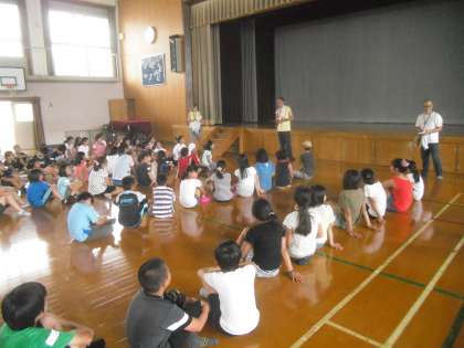 19日(土)13時体育館にて,「サマー キャンプ」の開会式が