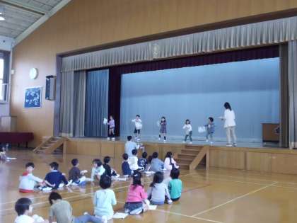 1年生は学習発表会に向けて,体育館での練習も始まっています。