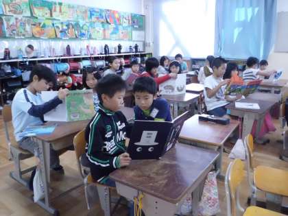 今日は,読書週間の取り組みとして,朝学習の時間に兄弟学年での読み聞かせがありました。
