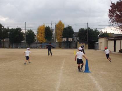 だんだんと寒くなってきましたが,さくらんぼ学級は元気に運動場で体育がありました!