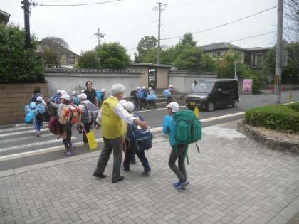 5年生は、たくさんの保護者の方にお見送りいただき、学校を出発しました。そして、仁和寺前から、京都バスに乗って、一路、花背山の家を目指しました。