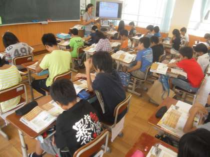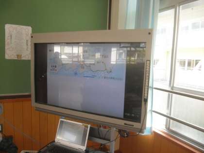 6年1組では,8月27日(木)2時間目に社会科の学習をしました。江戸時代の学習で,「参勤交代」の学習をしました。テレビに映った日本地図を見ながら,学習しました。