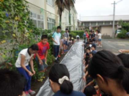 総合学習で,毎年お世話になっている上鳥羽の村田さんや地域のゲストティーチャーに来ていただき,教えていただきながら,九条ねぎを育てるための土づくりをしました。最後に,土を消毒するためにビニルシートをみんなでかぶせました。再来週は,いよいよ九条ねぎを畑に植えていきます。
