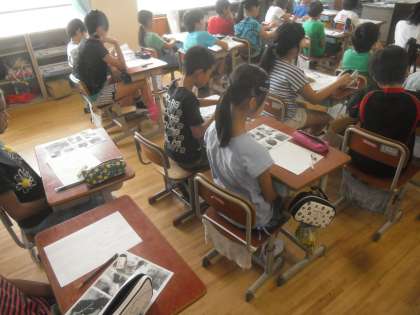 9月4日(金)2時間目は,5年2組は,図工の「お話の絵」の学習をしました。「エルと過ごした9か月」という「お話の絵」を描くために,盲導を描いてみました。