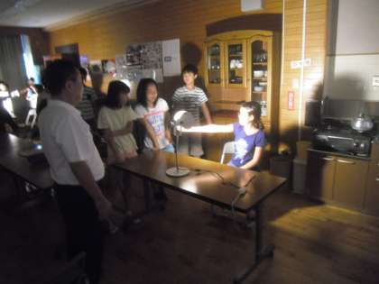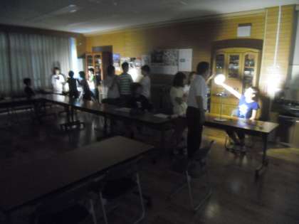 9月9日(水)6年2組は,3時間目に理科の学習をしました。月の満ち欠けの学習で,ふれあいサロンを真っ暗にして,ボールに光を当てて,実際に月の満ち欠けを作ってみました。実際に作ってみると,仕組みがよく分かります。