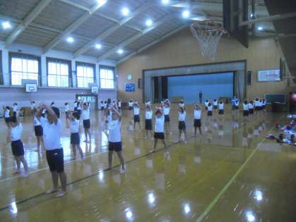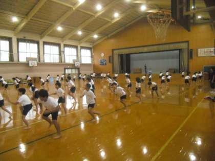 9月24日(木)2時間目,4年生は,体育館で,運動会の演技の練習をしました。明後日に,本番を迎え,頑張っていました。