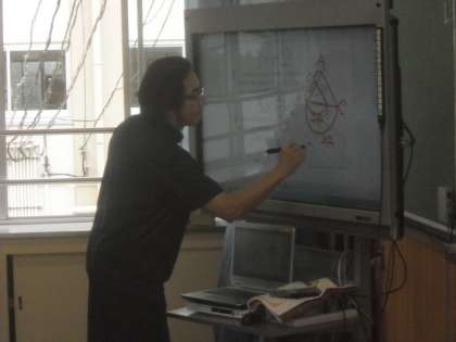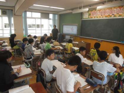 9月25日(金)6年2組1時間目は,算数の学習でした。「拡大縮小」の学習をしました。5・6年生の教室のテレビは,電子黒板機能付デジタルテレビが,入っていて,テレビに字を書くこともできます。