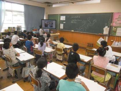 9月25日1時間目4年2組では,「みさきの家宿泊学習」の思い出の絵を描きました。テレビで写真を映してもらって,いろいろ思い出して,構想を練りました。