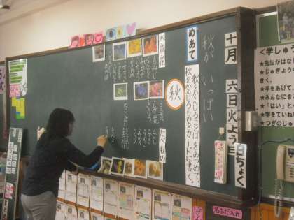 10月6日参観日,2年生は,国語の学習で,「秋がいっぱい」という学習をしました。秋を感じる言葉集めをして,秋を感じることをカードに書きました。