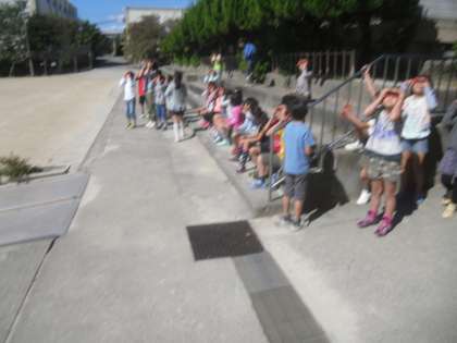 10月7日2時間目3年2組は理科の学習をしました。太陽めがねを使って,太陽の観察をしました。良く晴れていたのでよく見えました。