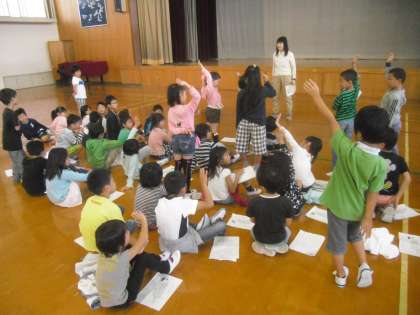 10月7日2時間目2年生は,学習発表会の練習をしました。劇の題名は,「みんなのスイミー」です。