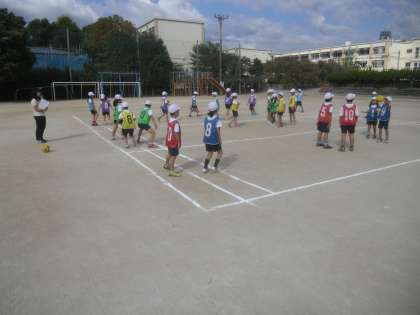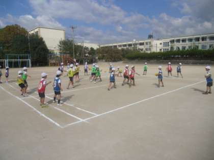 10月8日(木)1時間目3年1組は,体育の学習をしました。エンドボールの学習をしました。パスの工夫をしながら,ゴールを目指します。