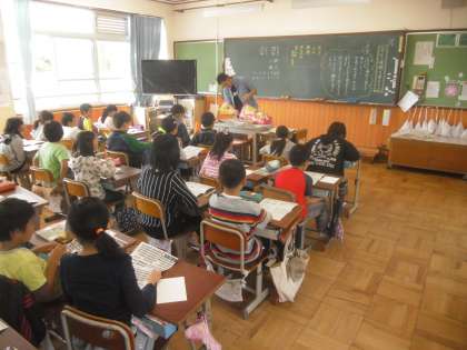 10月8日(木)1時間目4年1組は,国語の学習をしました。点字について学習しました。
