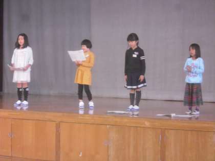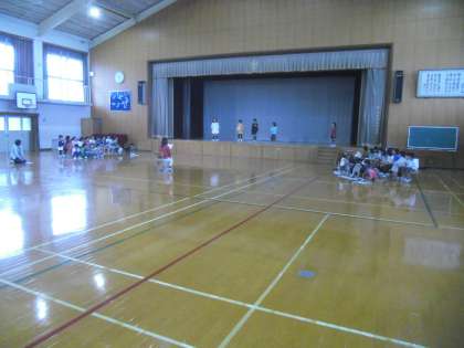 10月8日(木)1時間目2年生は,体育館で学習発表会の練習をしました。舞台と両袖に分かれて,本番の並び方で練習しました。