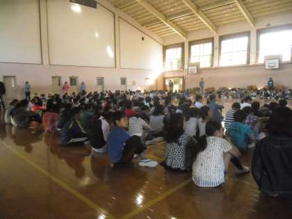10月13日(火)朝一番にオムロ ワールドがありました。オムロ ワールドは,子どもたちが運営する児童集会です。司会や各委員会からのお知らせやゲームがあります。